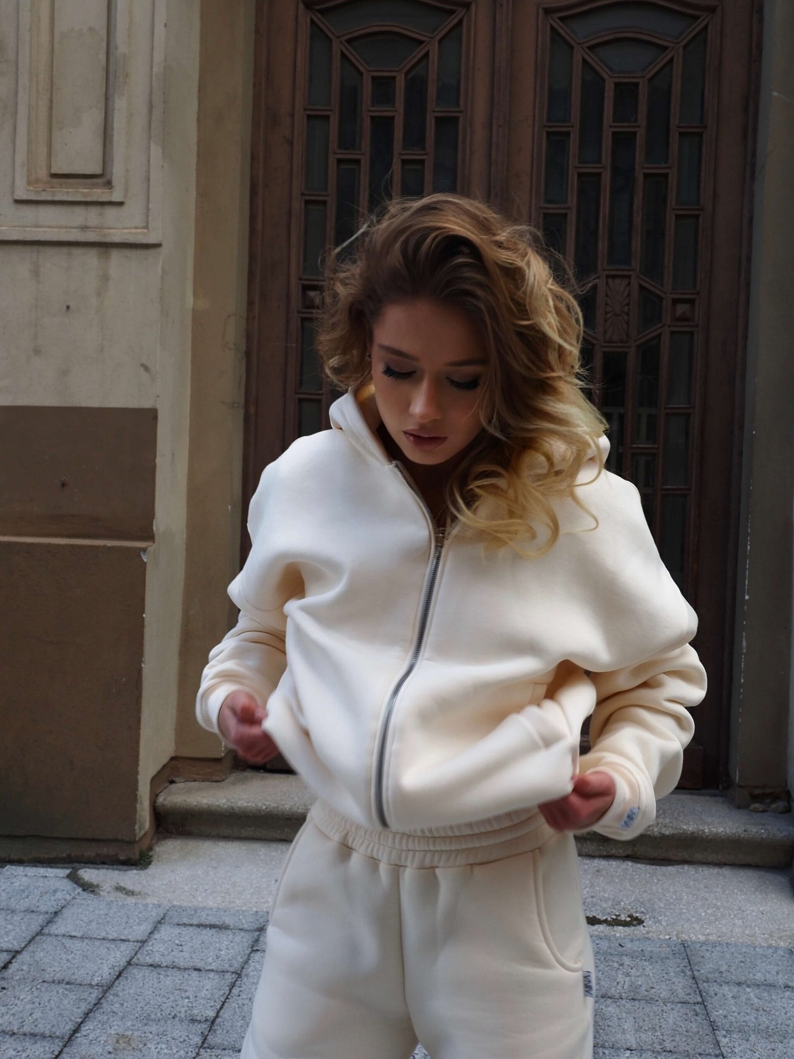 Laisvalaikio džemperis su pilnu užtrauktuku, skirtas kasdieniam dėvėjimui. Minkštas, šiltas ir jaukus – toks, kurį norisi turėti po ranka vėsesnėmis dienomis. Laisvas kirpimas gražiai krenta, bet ties pažastimis nėra platus.